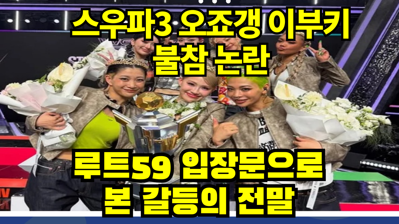 스우파3 콘서트를 앞두고 오죠갱 멤버 이부키의 불참 소식이 전해지면서 팬들 사이에 큰 파장이 일고 있습니다. 이어 주최 측 루트59와 이부키 측의 입장문이 공개되며 양측의 입장이 엇갈리고 있는데요. 이번 사태는 단순 불참을 넘어 그룹 내 갈등, 매니지먼트 문제까지 얽히며 논란이 확산되는 모양새입니다.