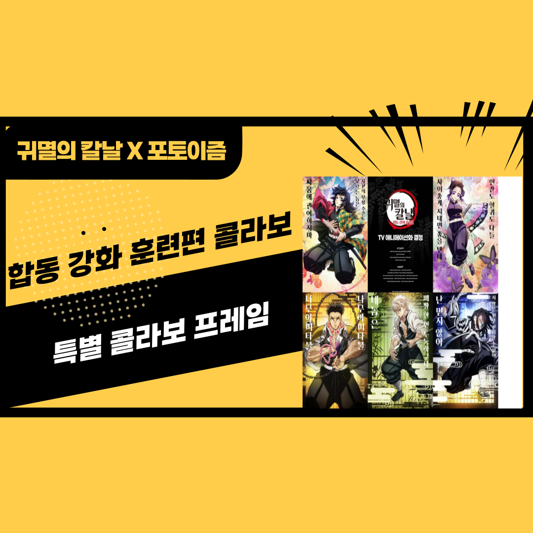 애니메이션 귀멸의 칼날 합동 강화 훈련편 방영을 기념해, 포토이즘과 특별 콜라보 프레임이 출시되었습니다. 이번 이벤트는 짧은 기간 동안만 진행되며, 캐릭터별 프레임 디자인이 다양해 팬들에게 큰 인기를 끌고 있습니다.