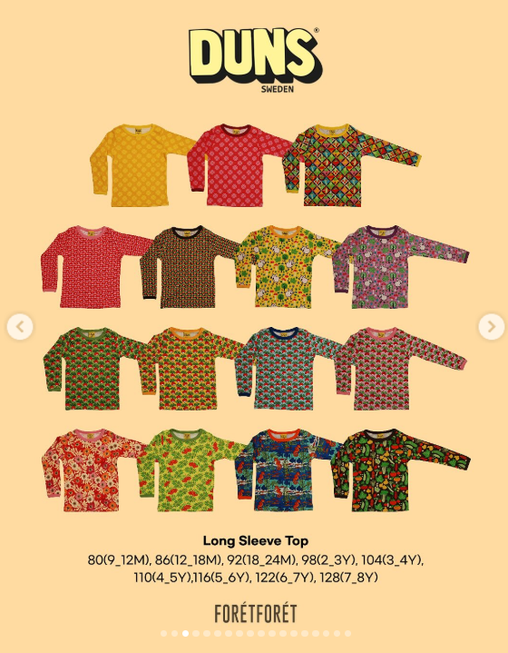 던스는 스웨덴에서 시작된 아동복 브랜드로, 자연을 모티브로 한 패턴과 부드러운 소재가 특징입니다. 아이들의 움직임을 고려한 편안한 핏 덕분에 일상복으로 활용하기 좋습니다.