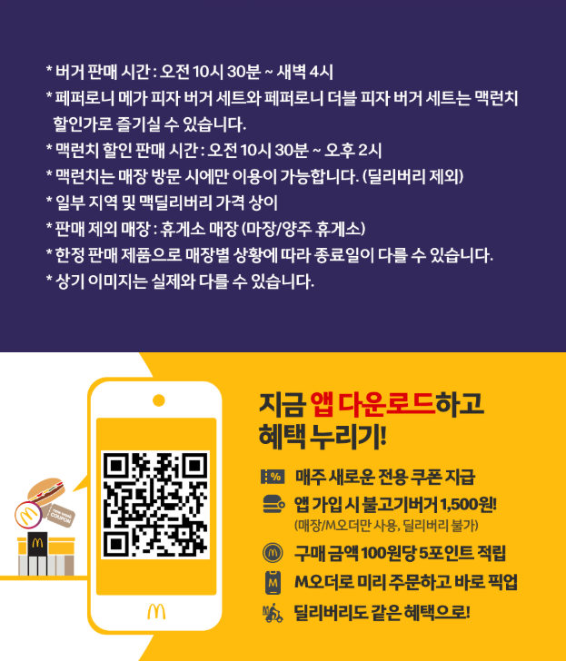 페퍼로니 피자 버거부터 익산 고구마 모짜렐라 버거, 맥모닝 과카몰레 라인업까지 이번 시즌은 선택지가 다양합니다. 점심에는 맥런치, 아침에는 맥모닝 신메뉴로 하루를 알차게 시작해 보셔도 좋겠습니다.