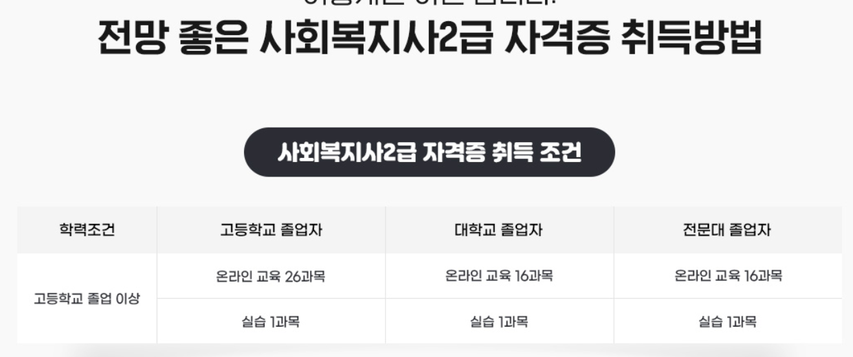 사회복지사 2급은 전문대학 이상의 학력이 있어야 취득할 수 있습니다. 학점은행제를 통해 관련 과목을 이수하고 실습을 완료하면 자격증 신청이 가능하지요. 학위가 없는 경우에도 고졸 이상이라면 학위와 자격을 동시에 준비할 수 있습니다.