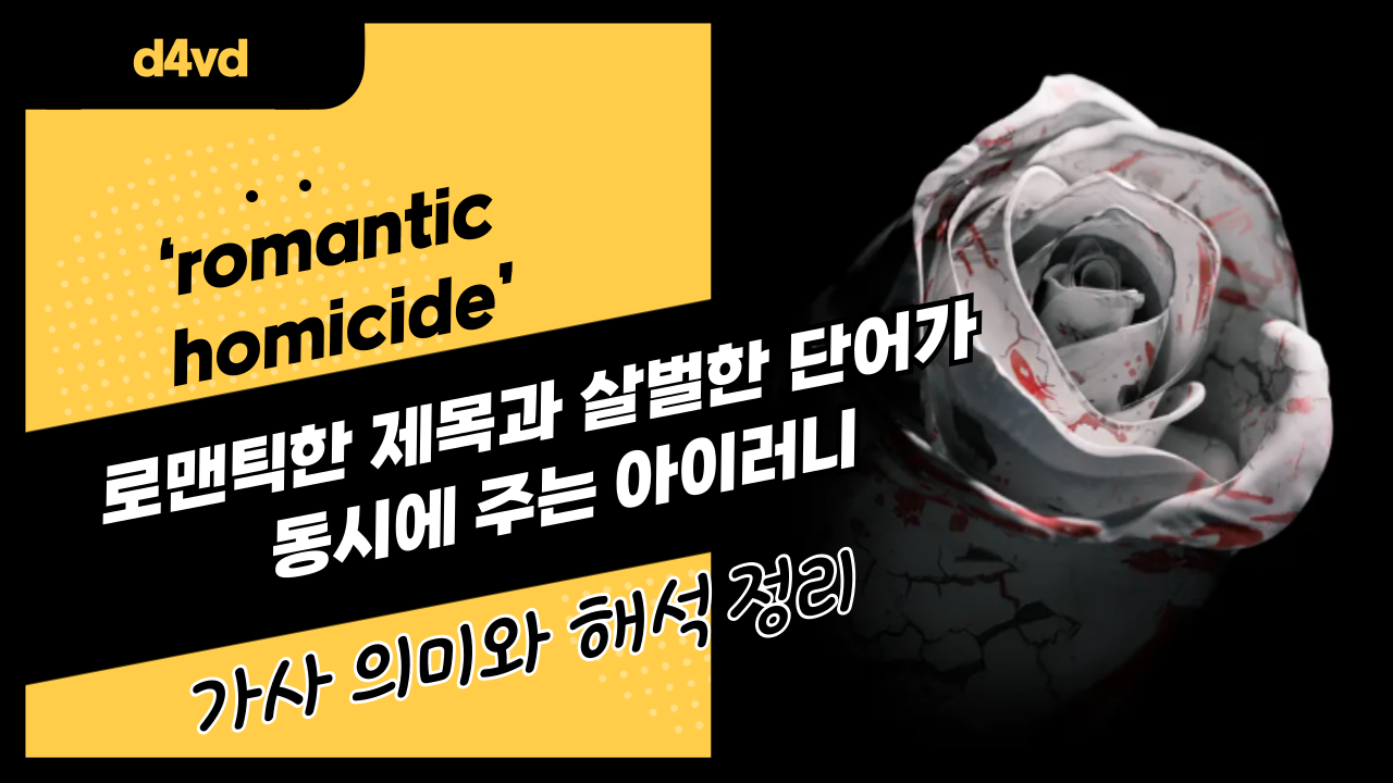 d4vd(데이비드)의 대표곡 중 하나인 ‘romantic homicide’는 제목부터 독특한 충격을 안겨주는 곡입니다. ‘romantic(낭만적인)’과 ‘homicide(살인)’라는 상반된 단어가 결합되어, 사랑과 관계 속에서 느낀 상처와 단절을 강렬하게 표현합니다. 단순한 사랑 노래가 아니라, 이별의 감정을 극적으로 묘사한 곡이라고 할 수 있습니다.