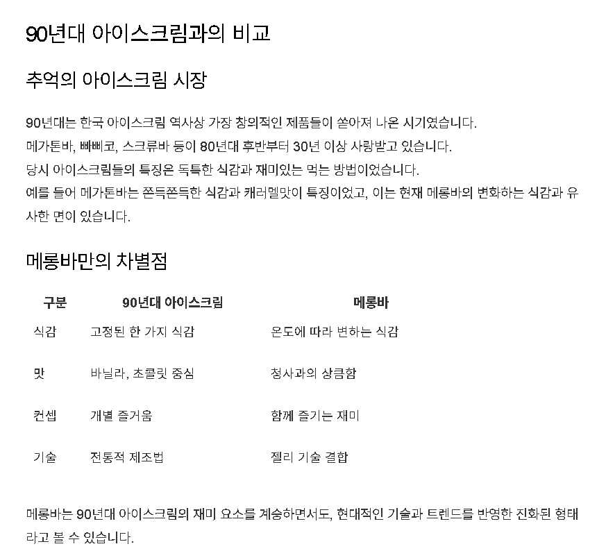 메롱바는 상큼한 청사과 맛을 베이스로 하며, 안쪽에는 쫀득한 젤리가 들어 있어 아이스크림과 젤리의 조합을 동시에 즐길 수 있습니다. 첫 입은 시원하고 달콤한데, 씹을수록 젤리의 쫄깃한 식감이 재미를 줍니다. 덕분에 어린이부터 어른까지 호불호 없이 즐길 수 있는 간식이라는 평이 많습니다.