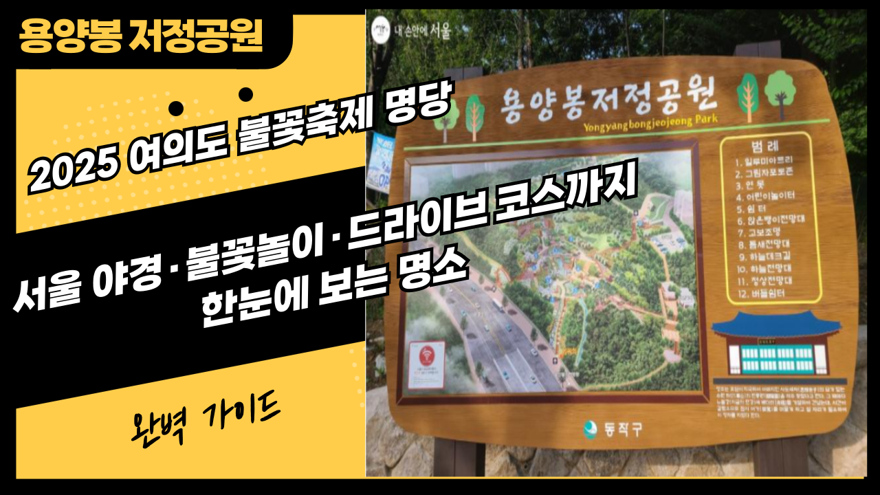 서울 여의도 불꽃축제 시즌이 다가오면서, 어디서 가장 아름답게 불꽃놀이를 감상할 수 있을지 많은 분들이 궁금해하시죠. 올해 주목받는 명당 중 하나가 바로 ‘용양봉저정공원’입니다. 한강뷰와 노들섬, 여의도 야경을 동시에 즐길 수 있어 불꽃축제 관람뿐 아니라 드라이브, 데이트, 야경 감상 명소로도 손꼽히고 있습니다.