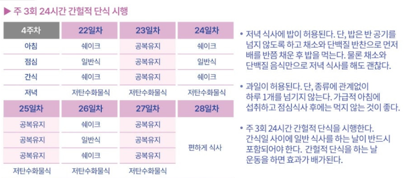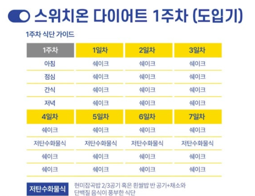 | 1주차 | 허용 식품·쉐이크 적응기 | 초기 체중 변화 시작 |