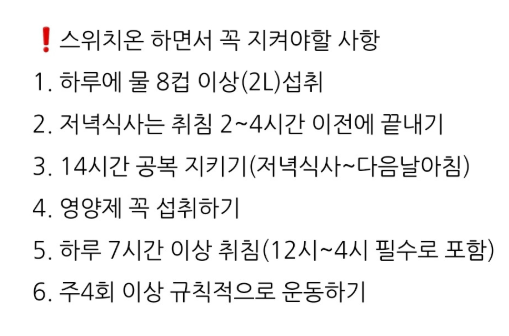 최근 많은 분들이 관심을 갖고 있는 스위치온 다이어트는 다양한 후기와 함께 실제 감량 경험담이 공유되며 화제가 되고 있습니다. 단순한 식단 제한을 넘어 간헐적 단식, 대체식품, 꾸준한 관리 습관 등이 결합된 방식으로 소개되고 있는데요. 이번 글에서는 1주차부터 4주차까지의 후기와 성공 팁을 종합해 살펴보겠습니다.