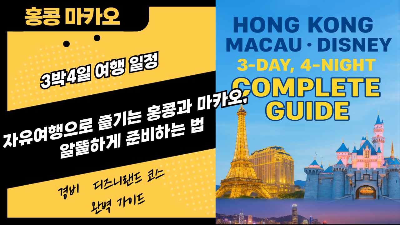 홍콩과 마카오는 가까운 거리 덕분에 함께 즐기기 좋은 여행지입니다. 3박4일 일정으로 디즈니랜드부터 소호 거리, 마카오 카지노와 세나도 광장까지 다채롭게 담을 수 있는데요. 이번 글에서는 여행 일정, 예상 경비, 준비물, 그리고 디즈니랜드 방문 팁까지 한눈에 정리했습니다.