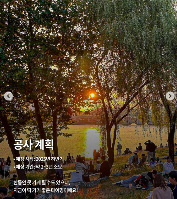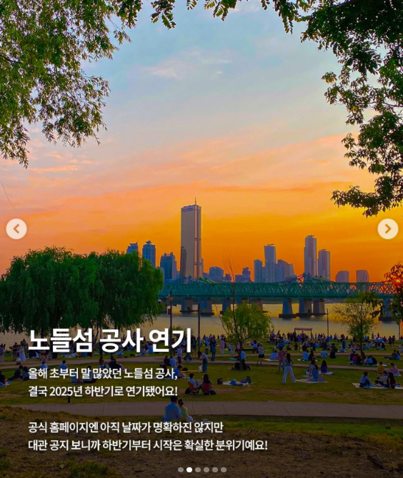 공사 전의 노들섬은 서울 시민들의 피크닉과 노을 명소로 사랑받아왔습니다. 특히 여름밤의 한강 바람과 가을 일몰, 겨울의 서울 불꽃축제를 즐길 수 있는 특별한 장소이기도 했죠. 이런 분위기는 공사가 시작되면 한동안 경험할 수 없으므로 지금이 마지막 타이밍입니다.