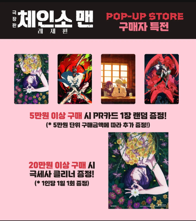 일정 금액 이상 굿즈를 구매하면 증정되는 특전 카드나 포스터는 팬들에게 놓칠 수 없는 요소였습니다. 또한 극장판 레제편 상영과 연계된 쿠키 영상이 언급되면서 팝업 경험이 더욱 특별하게 다가왔습니다.