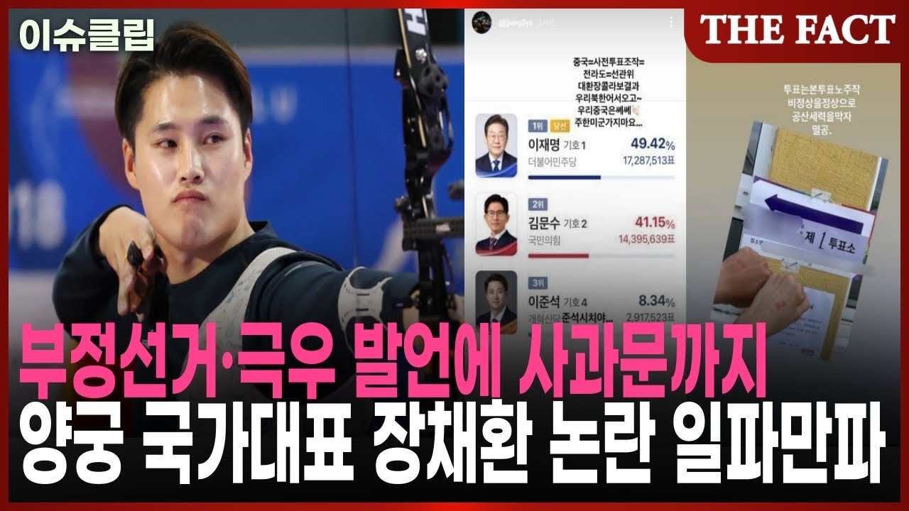 양궁 국가대표 장채환 선수가 최근 SNS에 올린 극우 성향 게시물이 큰 파장을 일으키고 있습니다.