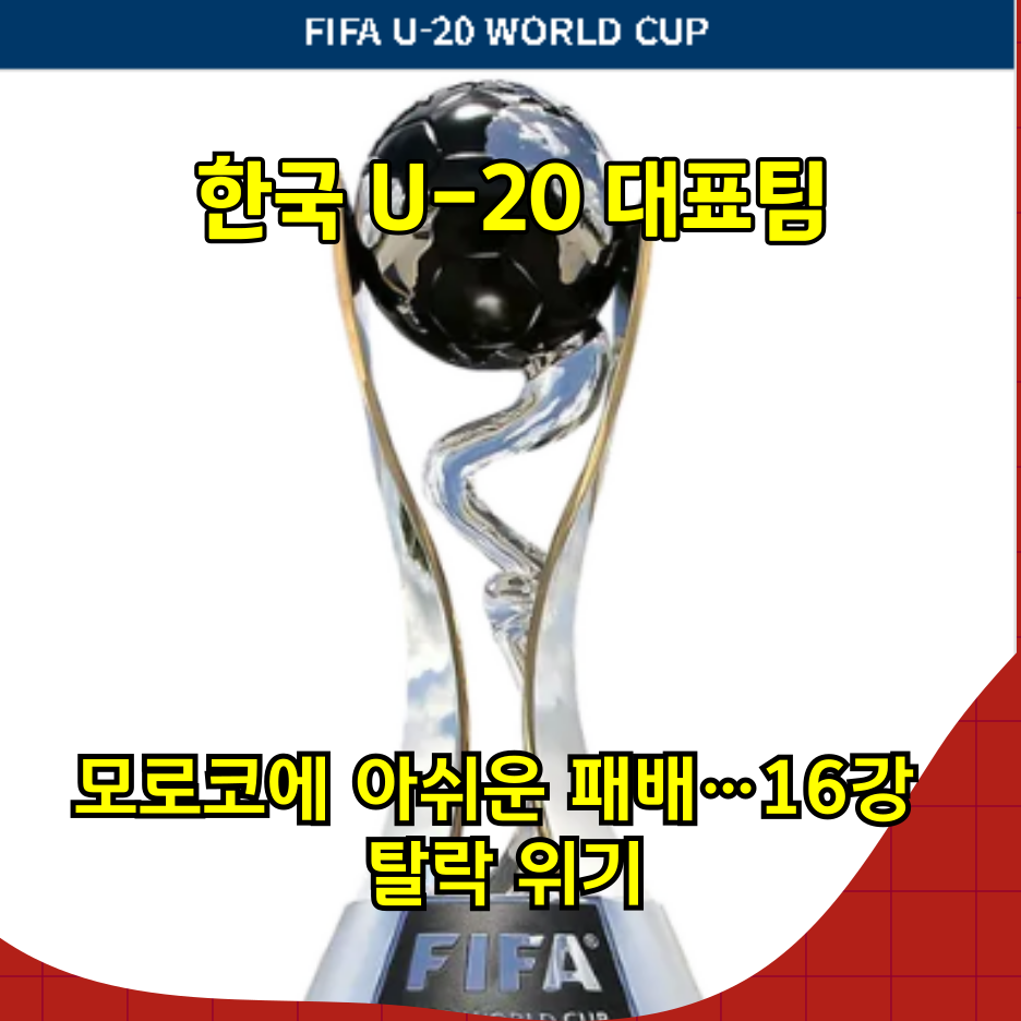 한국 U-20 축구대표팀이 모로코와의 16강전에서 연속 골을 허용하며 어려운 경기를 펼치고 있습니다. 전반전에 이어 후반에도 실점을 내주며 현재 0-2로 뒤지고 있는 상황인데요. 조별리그에서 좋은 흐름을 보여줬던 이창원호가 토너먼트 무대에서 주춤한 모습입니다. 남은 시간 동안 반전이 있을지 팬들의 관심이 집중되고 있습니다.