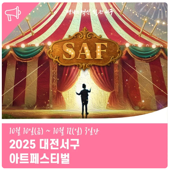 2025년 가을, 대전의 대표 문화축제 ‘대전 서구 아트페스티벌’이 다시 돌아옵니다. 예술과 음악, 체험이 어우러진 이 축제는 매년 지역민은 물론 전국 각지의 관광객까지 불러모으는 대전의 대표 가을행사로 자리잡았죠. 올해는 그 어느 때보다 풍성한 프로그램과 초호화 라인업으로 기대감을 높이고 있습니다.
