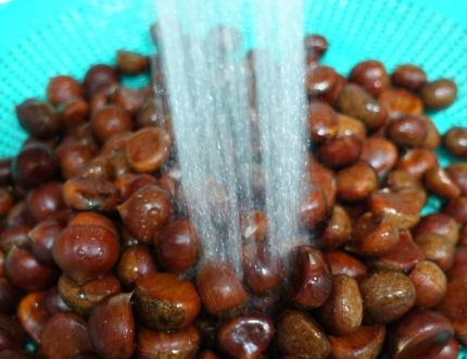 소금물에 밤을 12시간 정도 담갔다가 꺼내면 숨은 벌레도 제거되고, 표면이 한층 깨끗해집니다.