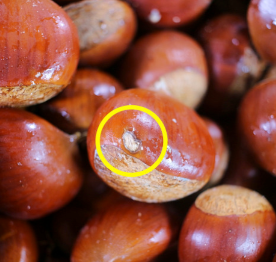 껍질이 단단하고 반짝이는 밤을 고르고, 흠집이 있거나 구멍 난 것은 바로 제거하세요.