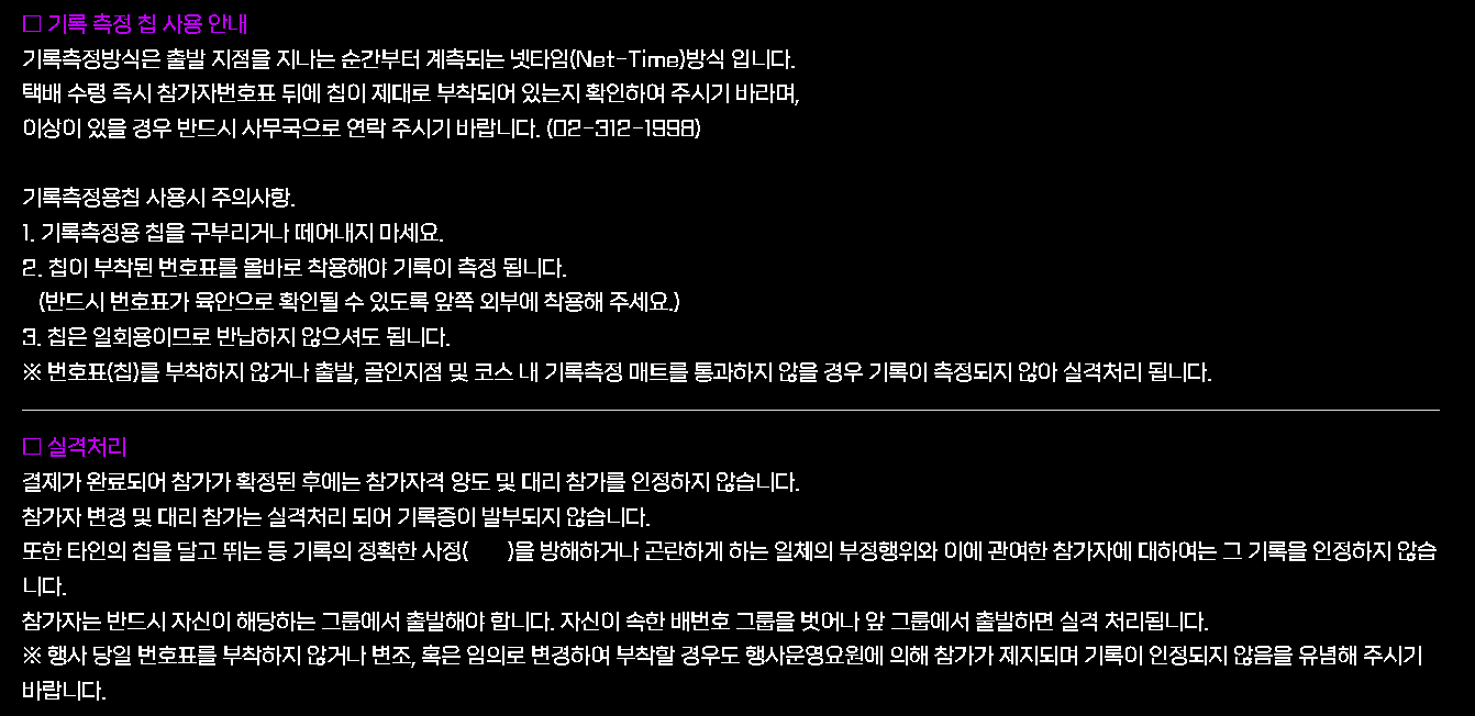 기록 측정용 칩이 등록된 번호표를 반드시 착용해야 합니다.