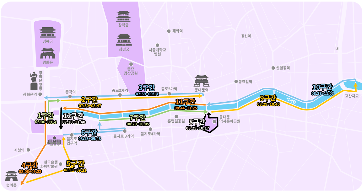 11km코스 | 서울광장–동대문–왕십리–잠실대교 | 11km |