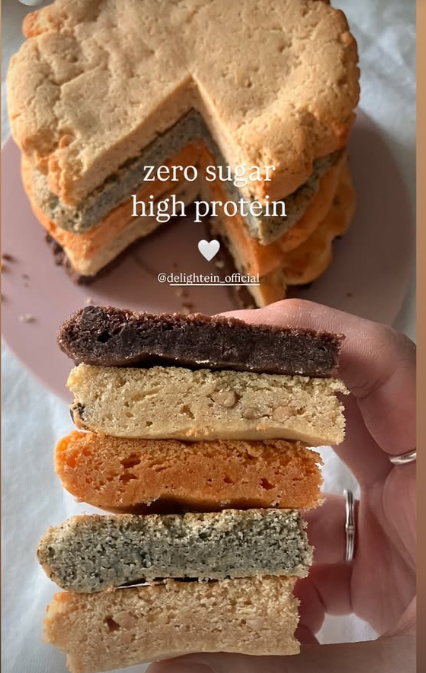 딜라이틴은 수제 느낌의 저당 쿠키 브랜드로, 단백질 함량을 높인 ‘프로틴 쿠키 라인’을 선보이고 있습니다. ‘빵어니스타’의 세컨 브랜드로도 알려져 있으며, 설탕을 최소화하고 대체감미료를 사용해 다이어트 중에도 부담 없이 즐길 수 있는 것이 특징이에요.