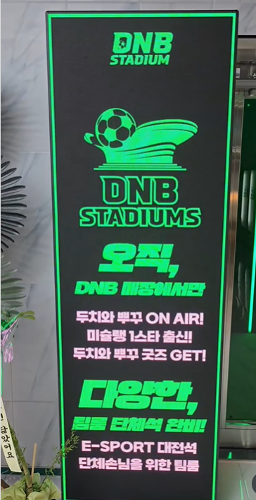 DNB스타디움은 유튜브 콘텐츠로 잘 알려진 두치와뿌꾸가 직접 운영에 참여한 PC방 브랜드입니다. 기존의 단순한 게이밍 공간에서 벗어나, 퀄리티 높은 음식과 편안한 좌석, 그리고 콘텐츠 팬들을 위한 감성 인테리어가 돋보였습니다.